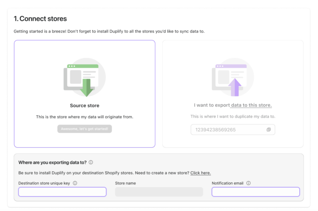 Um eine Verbindung zwischen Geschäften mit Duplify herzustellen, befolgen Sie diese Schritte: