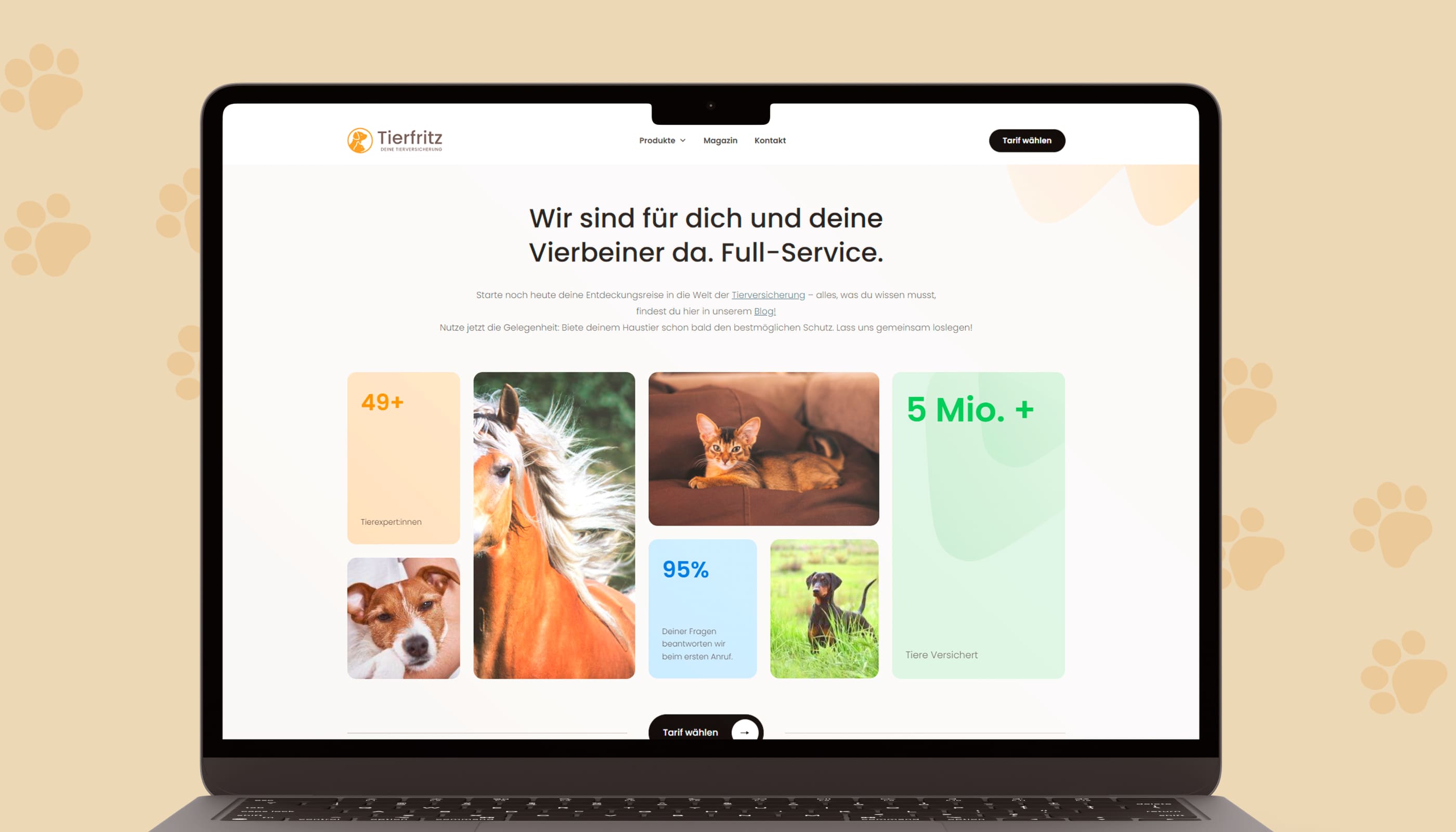 Die Webseite tierfritz.de ist ein beeindruckendes Beispiel für eine hochwertige Tierversicherungsplattform. Schwerpunkte liegen auf der klaren Darstellung von Dienstleistungen und einem informativen Blog.