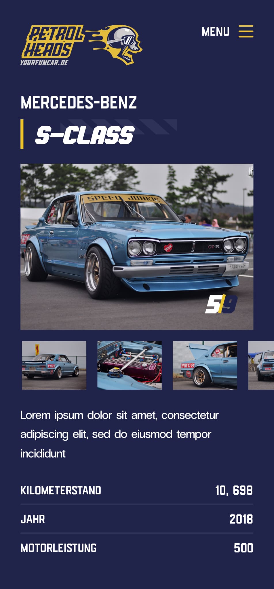 Die Website yourfuncar.de präsentiert sich als Plattform für den Verkauf von gebrauchten Sammlerautos und die Suche nach Custom Cars.