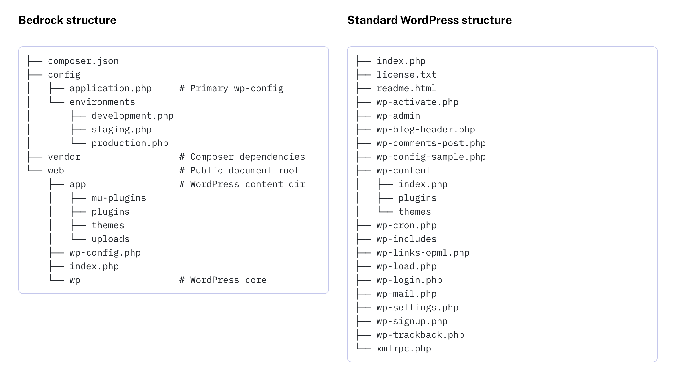 Der Wechsel zur organisierten Verzeichnisstruktur von Bedrock markierte einen Paradigmenwechsel in unserem Ansatz. Die Verlagerung des wp-content-Verzeichnisses in das Web-Verzeichnis vereinfachte nicht nur unsere Projektstruktur, sondern hatte auch handfeste Vorteile im Projektmanagement. Sie erleichterte eine klarere Trennung von Aufgaben, sodass unser Team sich präziser auf bestimmte Aspekte des Projekts konzentrieren konnte.